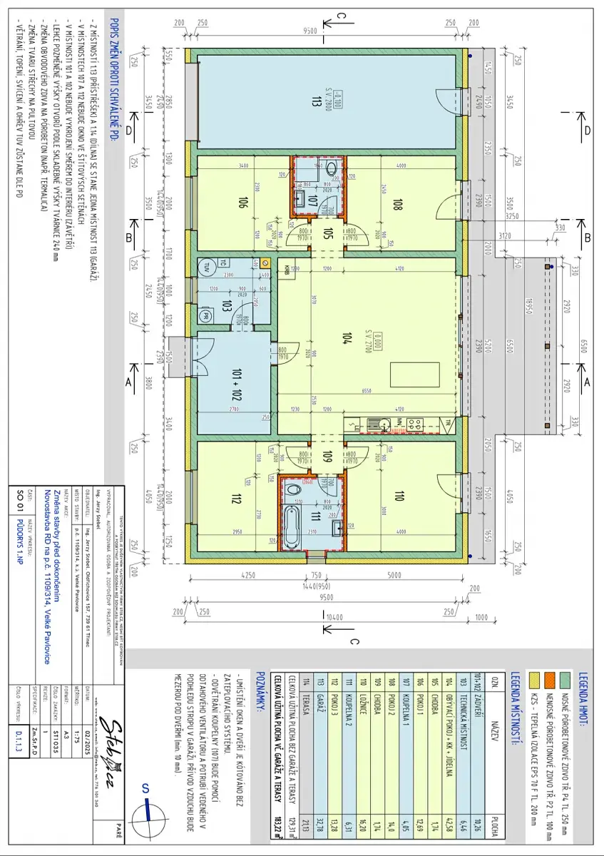 Velké Pavlovice novostavba 5+kk v nízkoenergetickém standardu, Celková užitná plocha včetně garáže a terasy činní 183,22 m2.