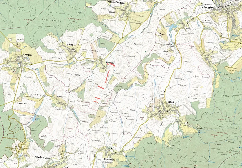 - katastrální území Honětice, okres Kroměříž