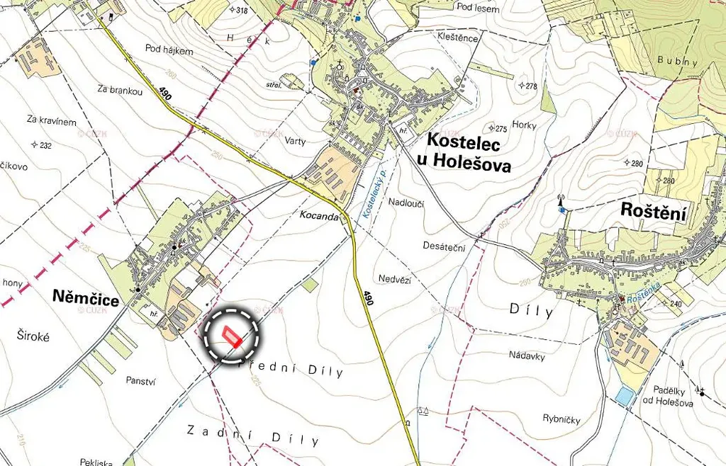 K prodeji jsou pozemky parc. č. 274/21, 274/29 a 294/15 zapsaných na LV 573 v KÚ Kostelec u Holešova a na pozemku č. 1462 zapsaném na LV 386 v KÚ Pravčice.