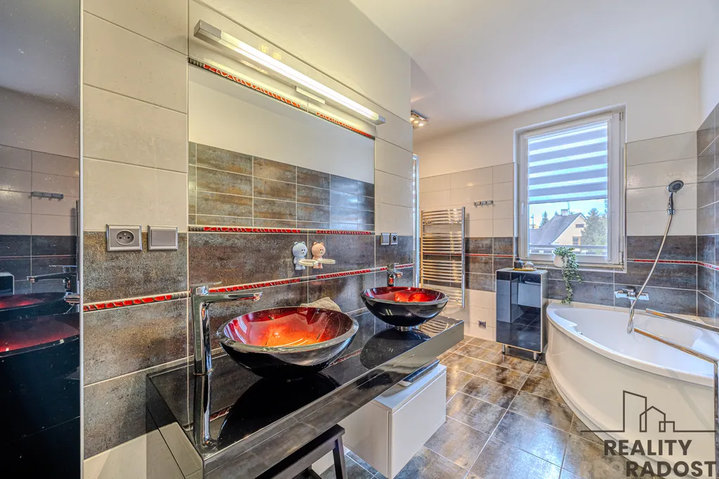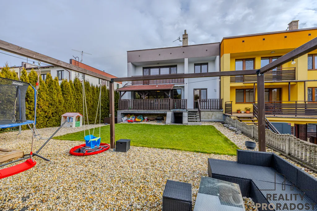 „Velký moderní rodinný dům s garážemi a zahradou v klidné části Klimkovic, pár minut od Ostravy. Ideální pro rodinu nebo kombinaci bydlení a práce z domova.“