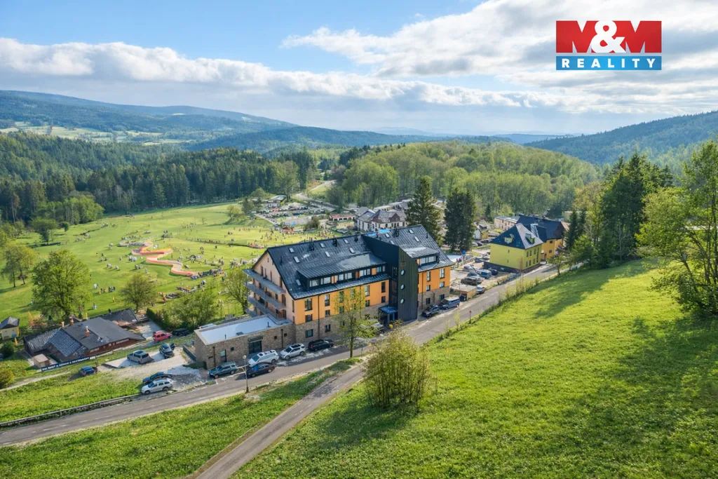 Prodej ski apartmánu 1+kk 34 m² Jánské Lázně, přímo pod sjezdovkou na Černou horu. Apartmán je stylově zařízený a prodává se s celkový vybavením. Je vhodný pro rekreační pobyt a nebo dlouhodobé bydlení pro milovníky hor, přírody, klidu, lyžování, či horské turistiky. Ski areál Černá hora, ski school, upravené běžecké tratě, restaurace a další služby pro návštěvníky jsou v těsné blízkosti apartmánového domu. Jánské Lázně 10 min chůze. Zde je i Aquapark, kino. Součástí prodeje je sklep, ski box s vyhříváním. V současné době je apartmán pronajímán přes cestovní kancelář v Trutnově, který zajištuje i úklid. Zavedený internet. Občanská dostupnost a vybavenost velmi dobrá.
