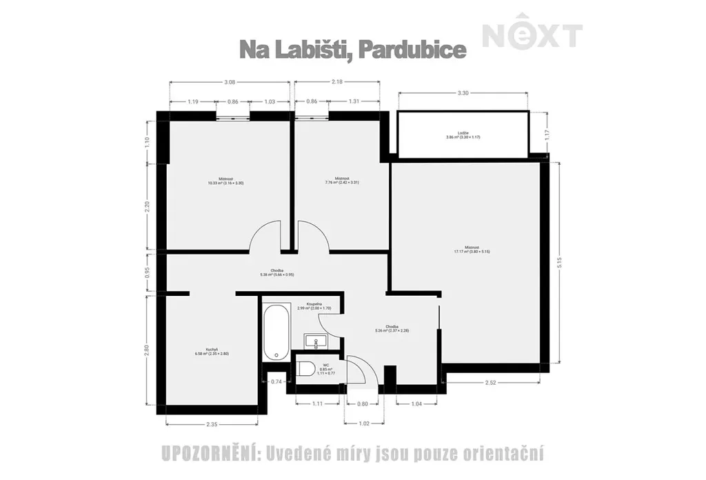 Dispozice bytu: vstupní chodba, kuchyně, ložnice, pokoj, obývací pokoj se vstupem na lodžii, koupelna s vanou, samostatné WC,.