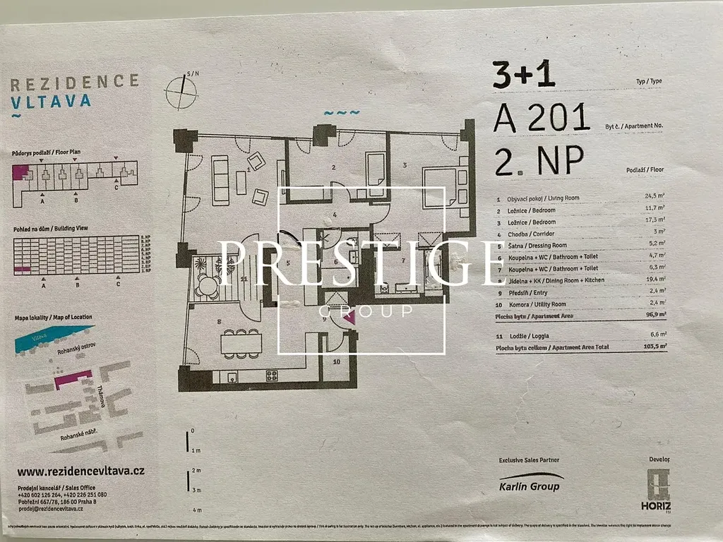 «PRESTIGE GROUP» nabízí k prodeji byt 3+1 s balkonem o velikosti 102,5 m2 , který se nachází v rezidence Vltava na Praze 8 - Karlín.