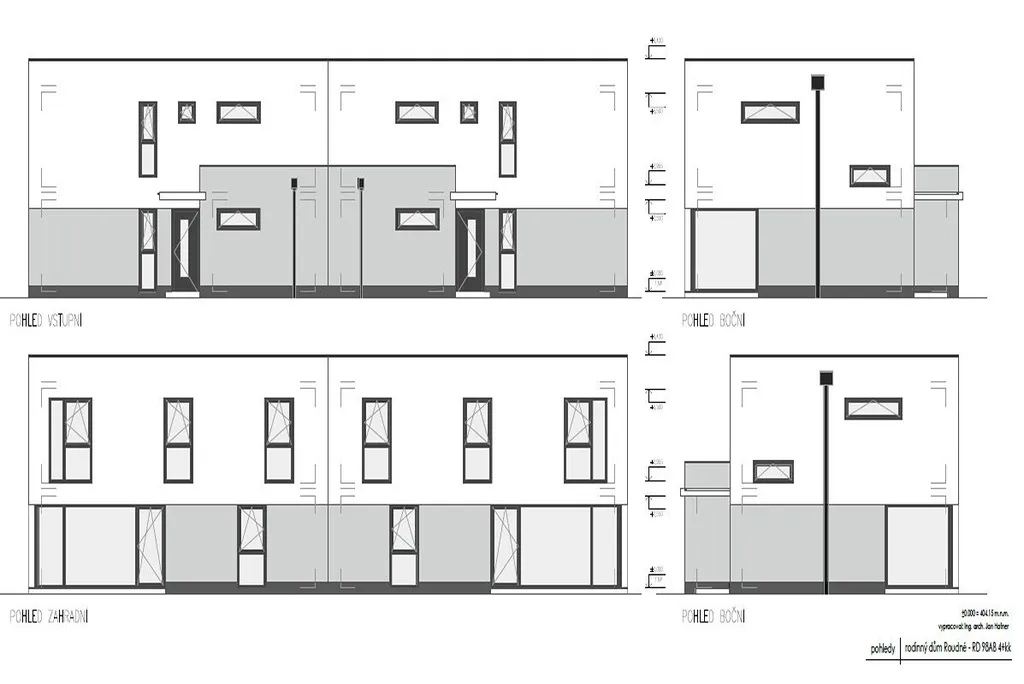 Nabízíme prodej novostavby rodinného domu "na klíč" o dispozici 5+kk, patrový dvojdům - č.98A s pozemkem 489m2 (parc.č.480/141) a č. 98B s pozemkem 458m2 (parc. č. 480/98). Dům se nachází v ulici Ječná v Roudném na okraji Č. Budějovic. Obytná plocha domu je 113m2 + terasa 12m2, parkovací stání pro 2 auta.