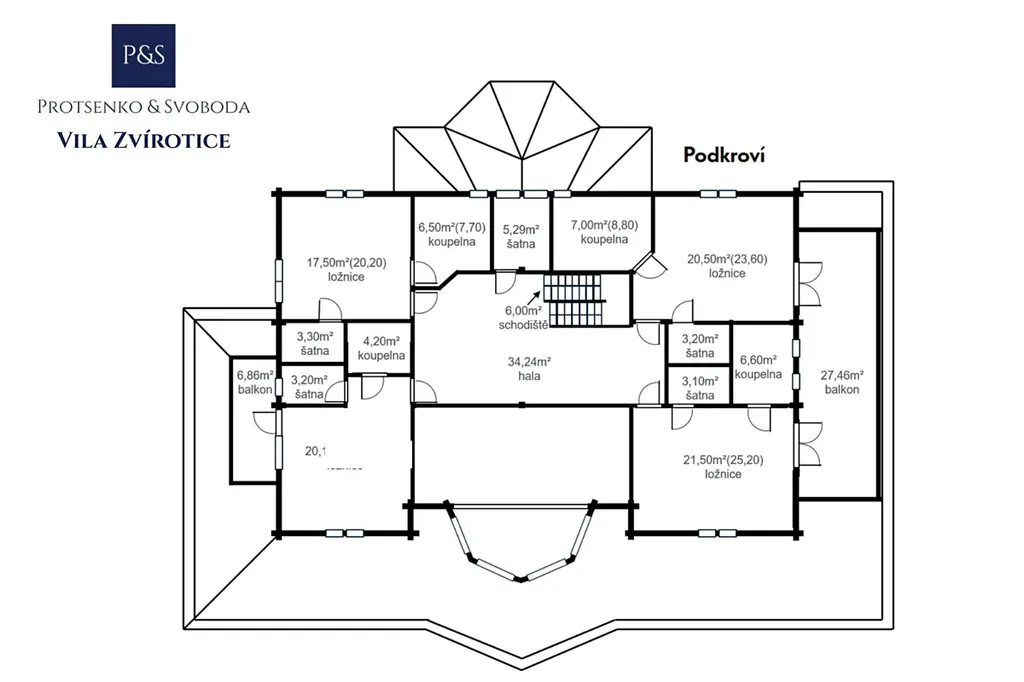 Horní patro je určeno pro soukromou zónu majitelů – hlavní ložnice s vlastní koupelnou, šatnou a terasou orientovanou k řece, doplněná o dvě další ložnice s koupelnami, které poskytují naprosté soukromí i komfort.