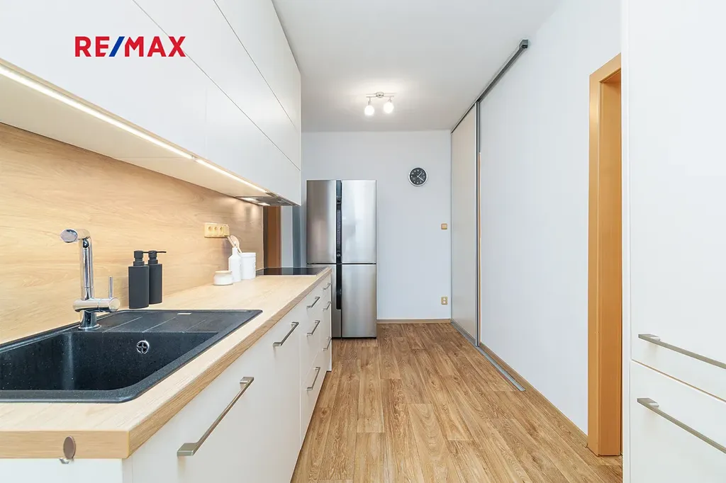 Tento krásný a moderní byt o dispozici 3+1 prošel zdařilou rekonstrukcí, díky které působí svěže, prakticky a velmi útulně. Byt má zděné jádro, nové podlahy, samostatné WC a koupelnu se sprchovým koutem a žebříkovým topením. Srdcem celého bytu je bezesporu prostorná vestavěná kuchyně s kvalitními vestavnými spotřebiči značky Gorenje – myčka, sporák, mikrovlnná trouba, varná deska a granitový dřez. Kuchyně je navržena s důrazem na každodenní provoz: chytře řešené šuplíky, dostatek pracovní plochy a promyšlené úložné prostory ocení každá rodina.