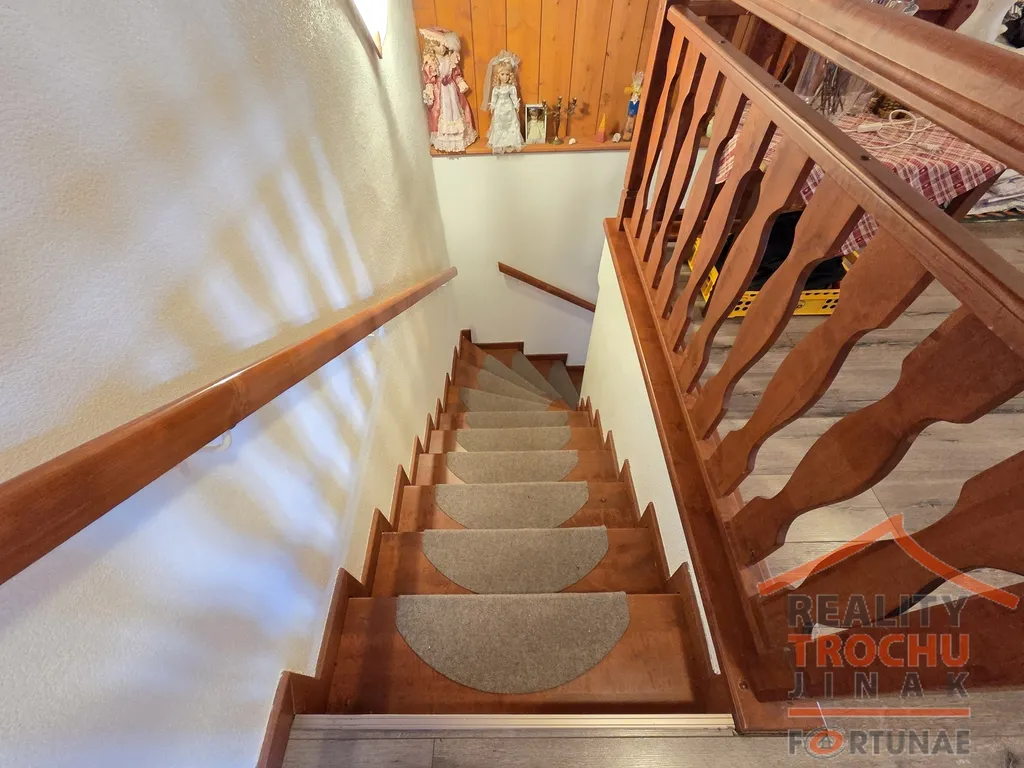 Nabízíme k prodeji rodinný dům 5+kk v malebné obci Podlevín. Tento patrový dům, postavený pouze z kvalitních materiálů a z cihlové konstrukce, disponuje pěti pokoji a kuchyňským koutem, což poskytuje dostatek prostoru pro velkou rodinu nebo pro ty, kteří potřebují několik místností pro práci, relaxaci či koníčky. V nemovitosti dvě moderní koupelny, kde jedna má vanu, druhá sprchový kout. Podlahy vinyl. S užitnou plochou 185 m² nabízí kompaktní, ale efektivní dispozici. Vytápění je realizováno elektrokotlem napojeným na podlahové topení, radiátory a dále pak krbová kamna v obýváku. Dům je kolaudovaný v roce 2013. Dům je v perfektním stavu bez známek opotřebení. Prostorné parkování pro 6 vozidel a velmi velká zahrada 2415 m2 s ovocnými stromy. Na zahradě je krytý bazén. Krásný a prostorný dům je situován v okrajové klidné části obce - nachází se v blízkosti lesa na okraji vesnice Podlevín, která je součástí města Nová Paka v okrese Jičín. Dům je velmi dobře zateplen a krbová kamna v obývacím pokoji dokáží vyhřát celý prostor domu. Okna jsou dřevěná, dveře a interiér rovněž dřevo. V přízemí je dlažba, ve druhém podlaží pak plovoucí podlaha, v koupelně v přízemí podlahové topení. V každé místnosti je rovněž el. topení. Dům je napojen na čističku odpadních vod a rovněž má svou vlastní studnu. Byl stavěn jako vícegenerační bydlení a jsou k tomu připravené i veškeré rozvody. Po vstupu do domu se ocitnete v zádveří s vestavěnou skříní a vejdete do předsíně (8,19 m2), která je hlavním komunikačním prostorem. Navazuje na schodiště, které spojuje přízemí s podkrovím. Chodba vede po levé straně do prostorného světlého obývacího pokoje s jídelnou (32,14 m2), na který navazuje kuchyňský kout (6,81 m2) a spíž. V přízemí se rovněž nachází technická místnost (7,54 m2), WC, šatna (5 m2), velká pracovna s kobercem (13,79 m2) a již zmíněná prostorná koupelna (13,30 m2). Po dřevěných schodech se dostaneme do 2.NP, kde jsou tři samostatné pokoje, šatna a sociální zařízení. Z prostoru velké chodby (11,19 m2) v poschodí je přístup do 3 pokojů (17,56 m2, 19,65 m2 a 29,54 m2). Ložnice je spojená se šatnou. Z chodby je přístup také na půdu. Obec Podlevín nabízí dobré dopravní spojení do okresního města Jičín (13km) a nedaleké Nové Paky (2,5km), autobusová zastávka je vzdálená 2,5 km. Veškerá občanská vybavenost se nachází v Nové Pace, sama obec má jen omezenou občanskou vybavenost (sezónní hospoda, plavecký bazén, hala na bruslení a lední hokej, nové hřiště, hasičárna a obecní úřad). V okolí je krásná příroda, sjezdovky jsou v dojezdové vzdálenosti (Jilemnice-13km, Vrchlabí -22km, Nová Paka - Máchova stezka na běžky), 24 km Dvůr Králové/ZOO). Doporučujeme, financování zajistíme.