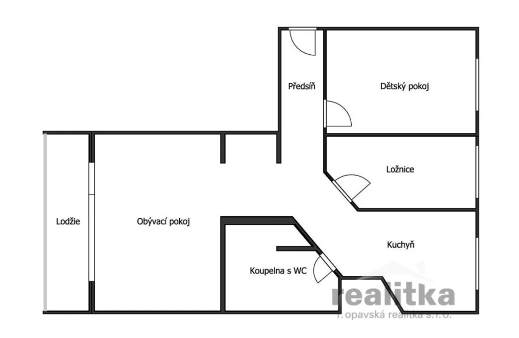 Dispozice bytu zahrnuje předsíň, kuchyň s kuchyňskou linkou, obývací pokoj, ložnici, dětský pokoj a koupelnu se sprchovým koutem, vanou a WC. Byt má plastová okna včetně žaluzií. Vytápění je zajištěno centrálním ústředním topením. K bytu náleží sklepní kóje.