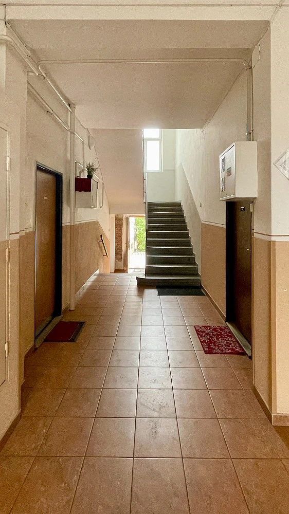 Byt je udržovaný, plně funkční, avšak určen k rekonstrukci. K bytu náleží prostorný sklep. Parkování je bezproblémové přímo v dvorním traktu za domem.
