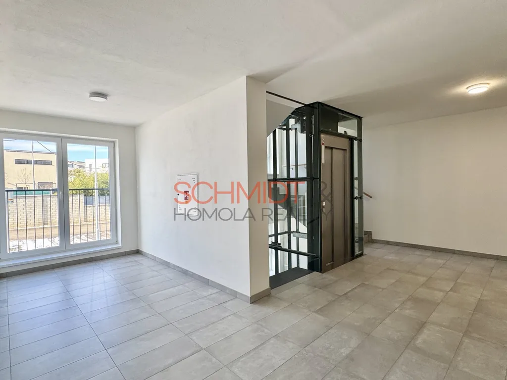 Bytový dům je vybaven výtahem, podzemními garážemi a společnou kočárkárnou. K bytu náleží vlastní garážové parkovací místo a sklepní kóje.