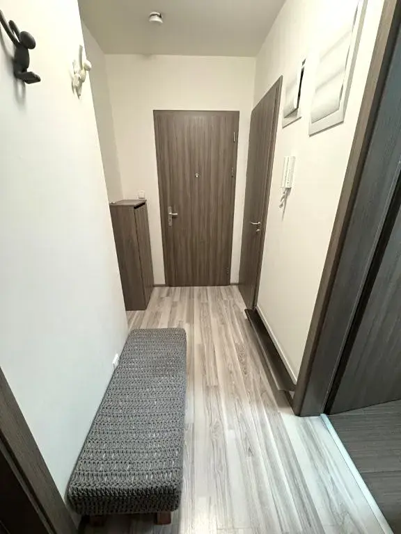Po vstupu bezpečnostními dveřmi se ocitnete v předsíni (4,50 m²) vybavené botníkem a zrcadlem. Z chodby jsou samostatné vstupy do všech místností.