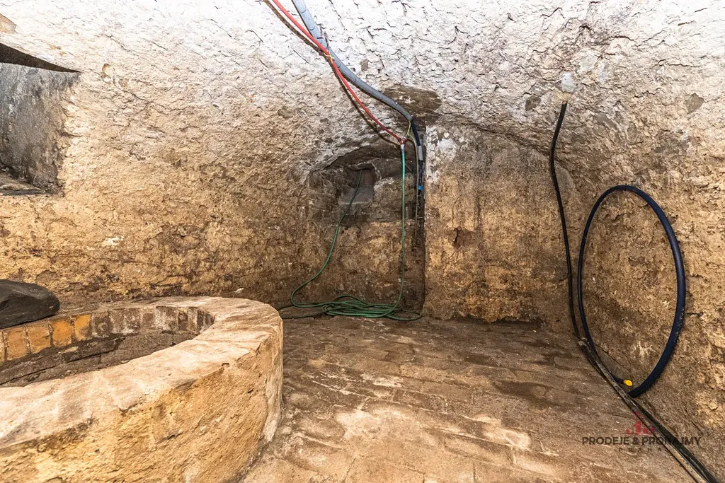 Jedny se nachází přímo po zahradou tohoto domu, vč. technické místnosti, kde je umístěn plynový kotel a kotel na pevná paliva. Další vedou z chodby domu a jsou zde dvoupodlažní klenuté kamenné sklepní prostory.