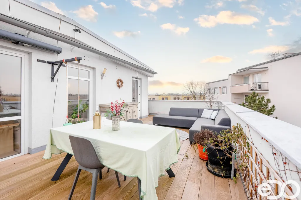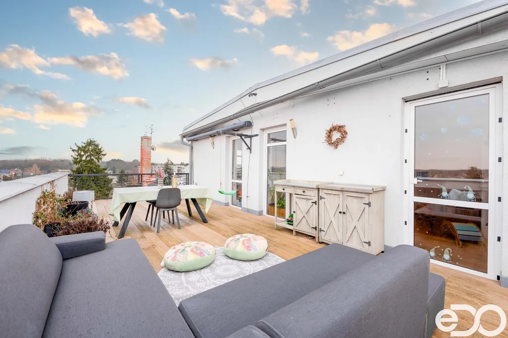 Hlavní předností bytu je prostorná terasa o výměře 25 m² s nerušeným výhledem na Krkonoše a Orlické hory.