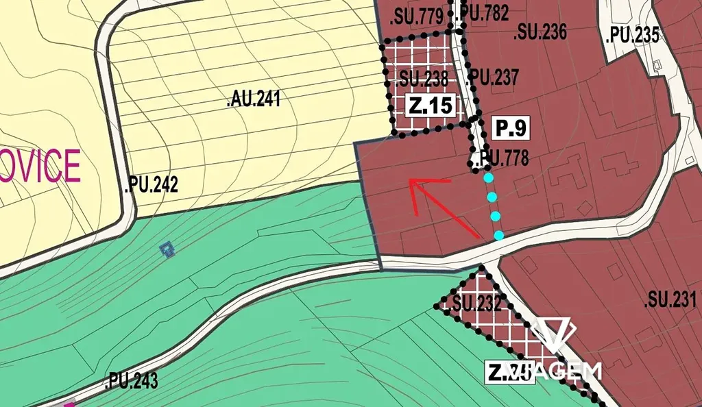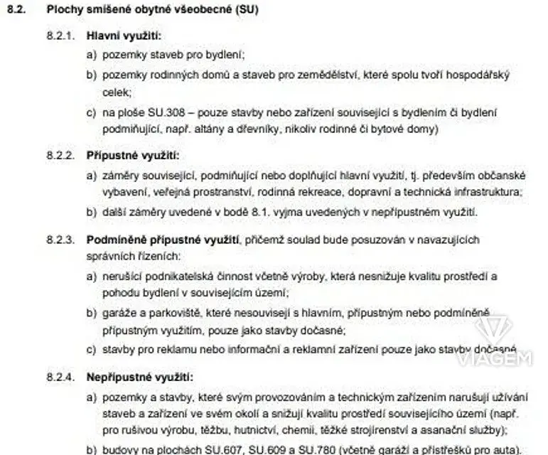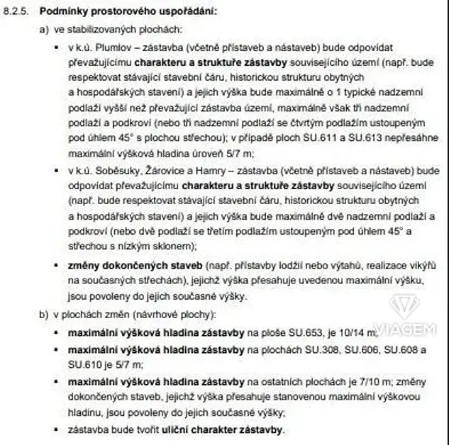 Stavební pozemek je v územním plánu označený jako SU - Plochy smíšené obytné všeobecné.