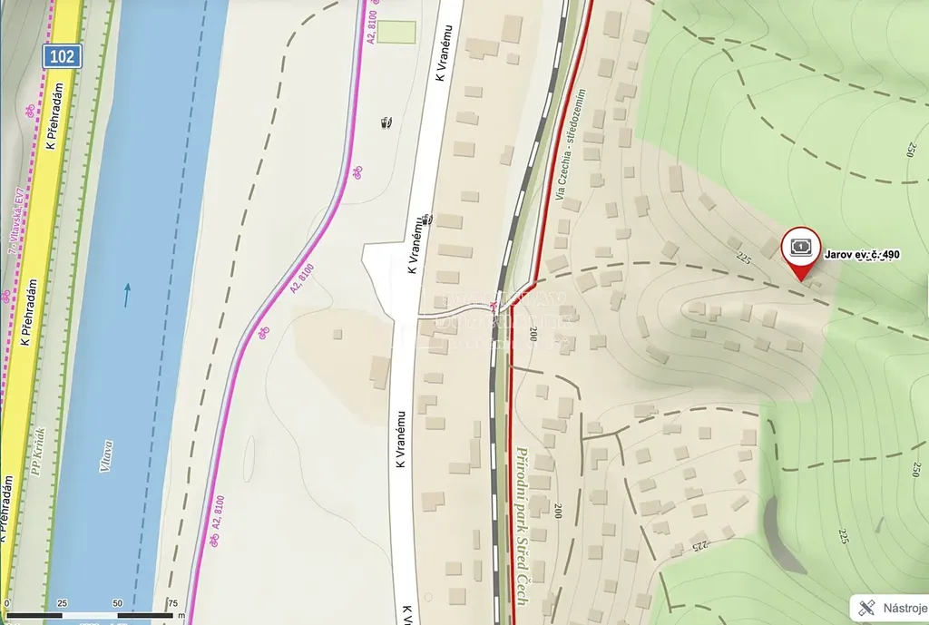 - parkování cca 180 m (GPS: 49.9539, 14.394416),