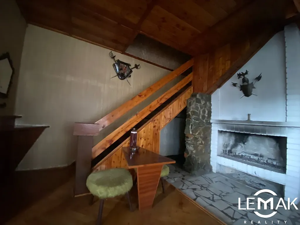 V přízemí se nachází prostorný obývací pokoj propojený s kuchyní, toaleta a koupelna. V horním patře je dostatek prostoru pro spaní s možností přístupu na rozlehlou terasu, ideální pro posezení a odpočinek s krásným výhledem.