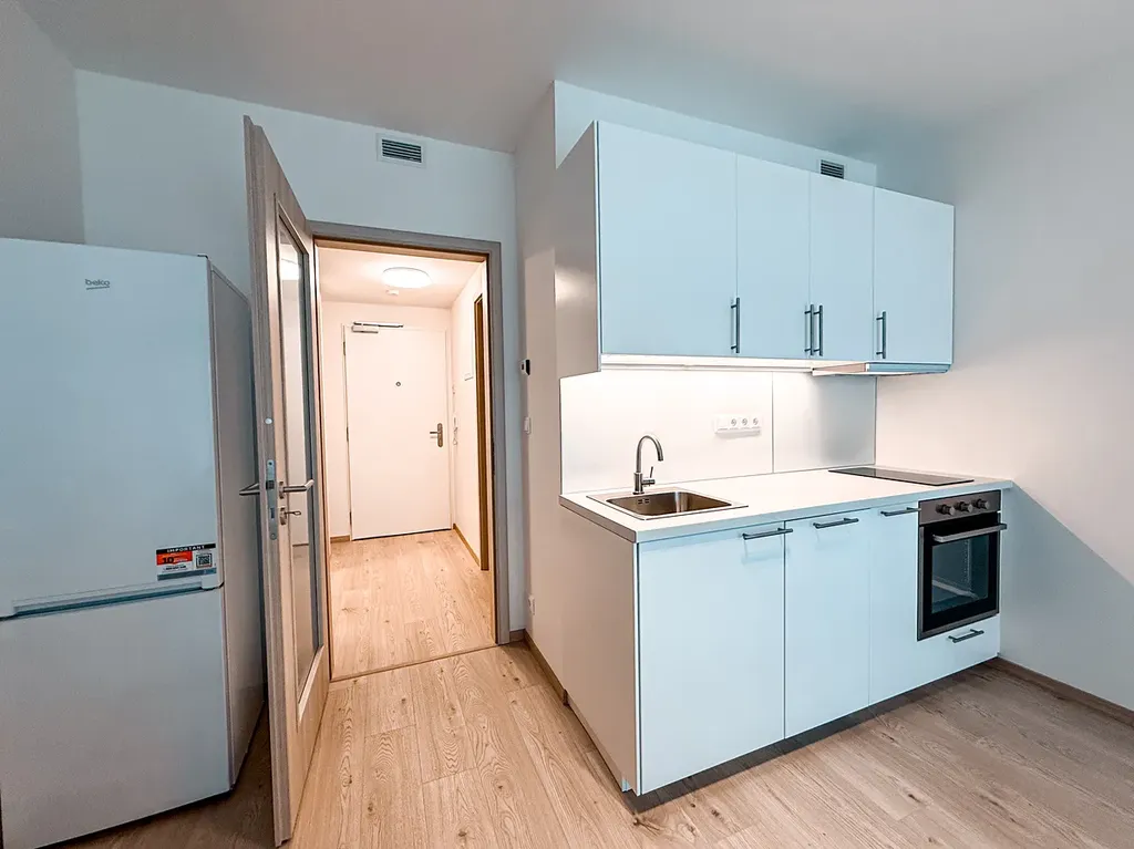 V exkluzivním zastoupení majitele Vám nabízíme k pronájmu zcela nový, moderně zařízený byt 1+kk o podlahové ploše 32,2 m² s balkonem 5 m² v prestižním rezidenčním projektu Tesla Hloubětín od společnosti Central Group.