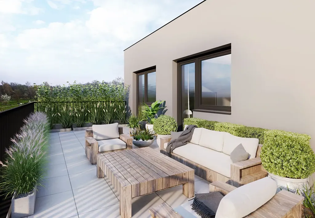 Nabízený byt 4+kk č. 43 zaujme velkolepou terasou 35 m² se vstupem přímo z obývacího pokoje a dokonce i z Vaší ložnice – ideální místo pro stolování pod širým nebem, nebo třeba ranní jógu. Obývací pokoj plynule navazuje na kuchyň s jídelnou, takže centrální prostor srdce bytu působí vzdušně a přirozeně propojeně. Následují tři neprůchozí ložnice. Praktickým a velkým bonusem jsou: technická komora a také druhé samostatné WC. V koupelně je sprchový kout a toaleta. Podlahové vytápění se stará o příjemné teplo a více místa bez radiátorů. Samozřejmostí je příprava na předokenní žaluzie. Byt se nachází v posledním podlaží, díky čemuž nabízí více klidu a soukromí