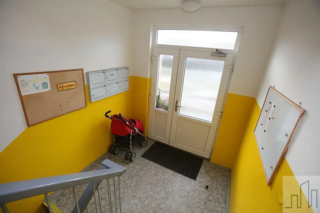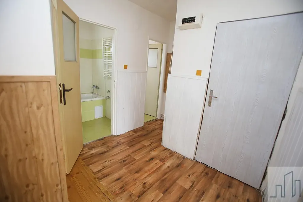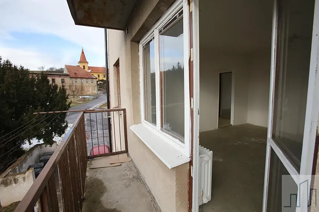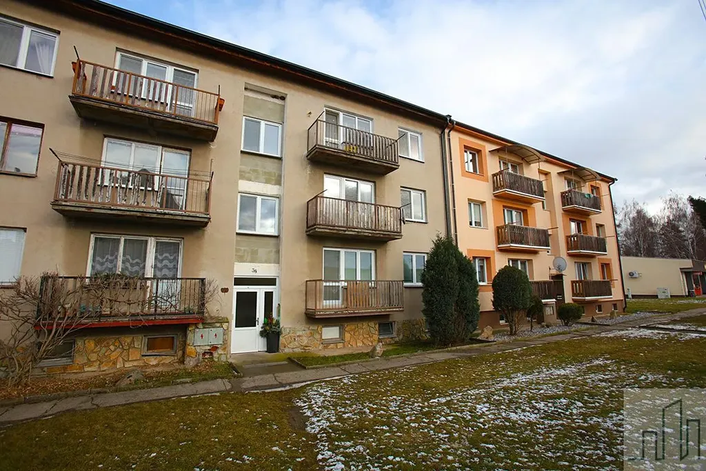 Byt se nachází ve 2. nadzemním podlaží třípodlažního cihlového domu bez výtahu, přímo v centru obce. Dispozičně je velmi dobře řešený a nabízí praktické uspořádání místností s dostatkem prostoru pro rodinné bydlení i případnou úpravu dle vlastních představ. Z obývacího pokoje je výstup na balkon s výhledem do centra obce. K bytu patří sklepní kóje o velikosti 7,5 m2.