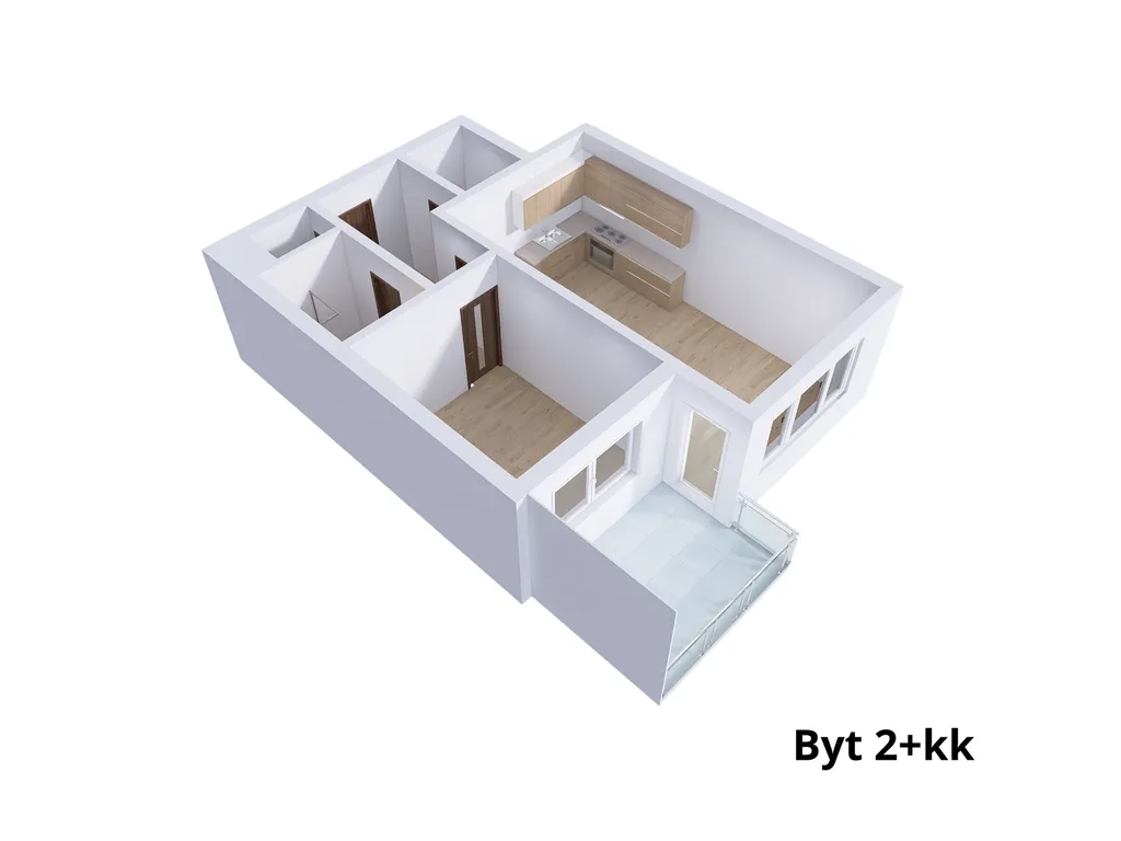 Nabízíme k pronájmu světlý a prostorný byt o dispozici 2+kk o velikosti 49,4 m², který se nachází ve 2. podlaží moderního bytového domu. K bytu náleží také balkon o ploše 9 m² a samostatná komora mimo byt (3 m²).