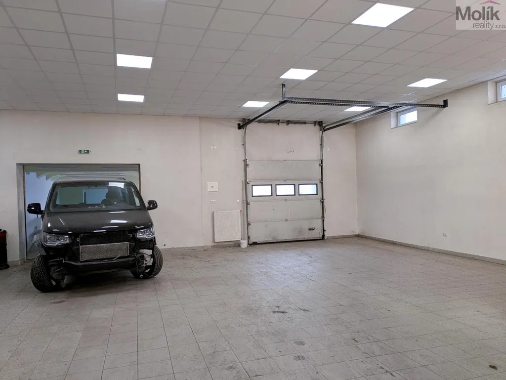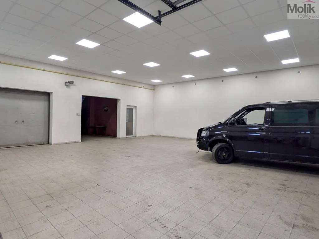 2. část prostor zahrnuje: halu s garážovým vjezdem, velký sklad, kuchyňku, šatnu, WC se sociálním zařízením (celkem 380 m2 užitná plocha)