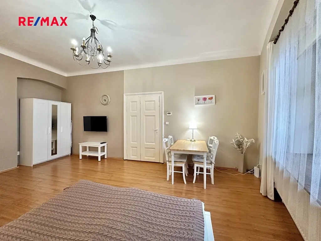 Dovolujeme si vám nabídnout pronájem bytu na opravdu výjimečném místě Prahy 1. Jen pár kroků od Vltavy, v klidné Anežské ulici na Starém Městě, se nachází byt 1+1 o ploše 39 m², který nabízí bydlení v opravdovém srdci Prahy. Všechna nejkrásnější místa Starého Města máte doslova pár minut chůze, přesto byt leží stranou turistického ruchu ve slepé ulici – v naprostém klidu. Historický dům s pavlačemi, vlastní zahradou, půvabným schodištěm a výhledem na kostel svatého Haštala dodává bytu nezaměnitelnou staropražskou atmosféru.