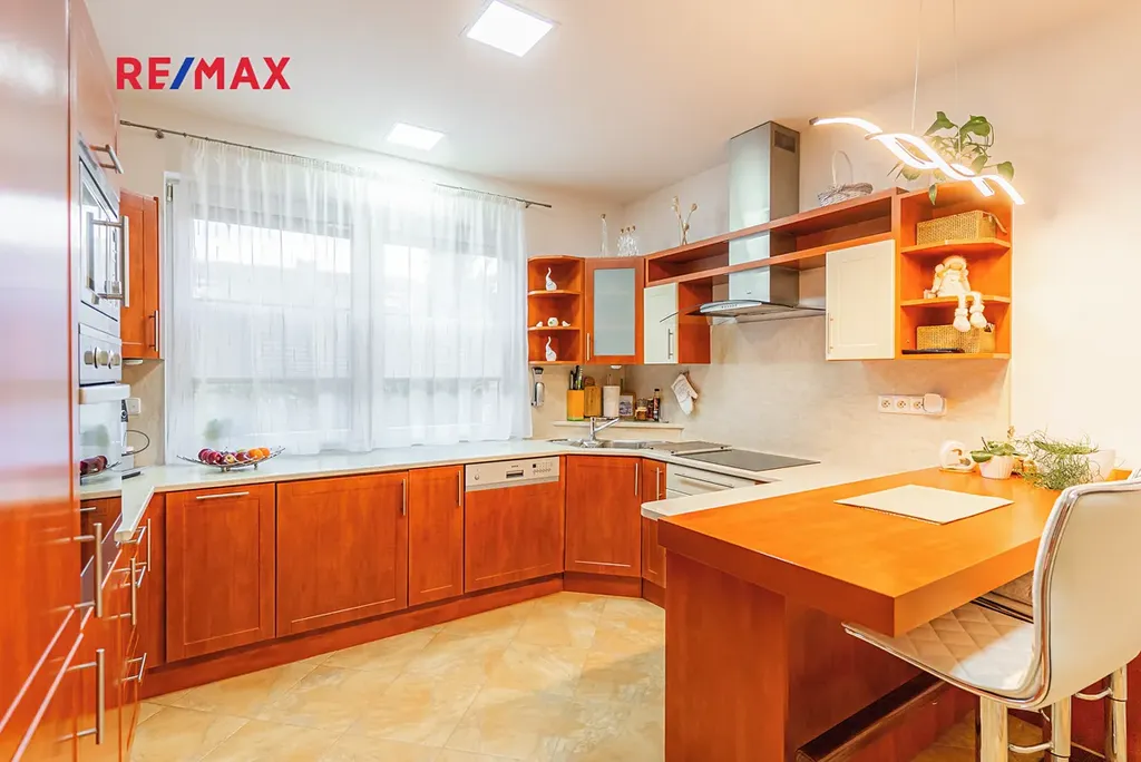 Dispozice domu je 3+1 s užitnou plochou 169 m². Kuchyň (12,35 m²) je samostatná, vybavená vestavěnými spotřebiči a barovým pultem. Dva prostorné pokoje (13 a 18 m²) poskytují dostatek místa pro rodinu, koupelna (10,5 m²) nabízí vanu, sprchový kout. V koupelně je podlahové topení. Samostatné WC s bidetem, technická místnost a praktická vstupní chodba s vestavěným botníkem dělají dům velmi funkčním.