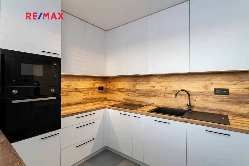 Dispozice: Samostatná kuchyně s pultem se spotřebiči ETA, lednice s mrazákem, myčka, indukční varná deska, elektrická trouba, obývací pokoj, ložnice se vstupem na lodžii a výhledem do zeleně, dětský pokoj / pracovna, koupelna s vanou, samostatná toaleta s pračkou a sušičkou BEKO, dva samostatné sklepy.