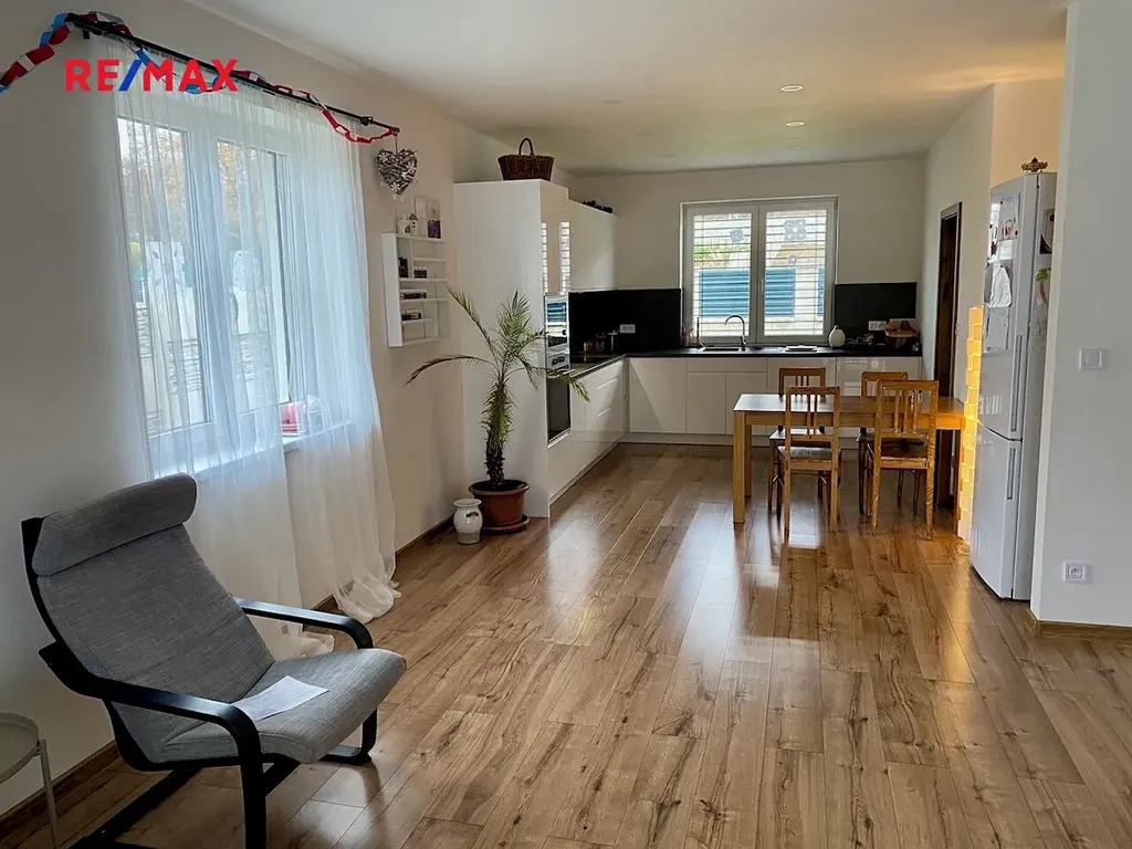 Novostavba samostatného rodinného domu 4kk/G se nachází v malebné obci Krhanice 3 km od Týnce n. Sázavou, kde příroda a klid na Vás dýchá na každém kroku. Řeka Sázava je pár kroků od domu.