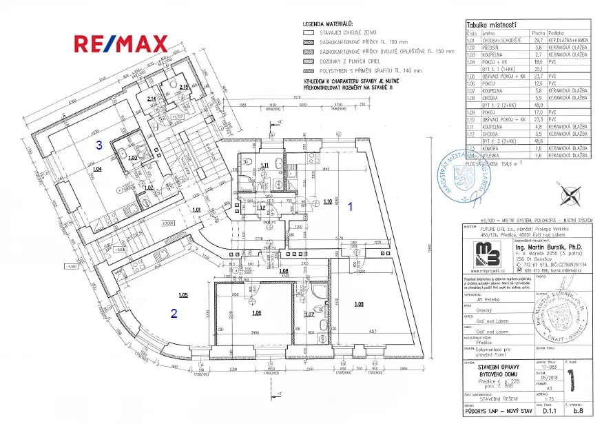 V domě jsou i další byty k prodeji s dispozicí 2+kk, 3+kk ve druhém a třetím podlaží.