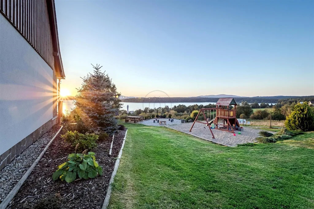 Panoramatický výhled na západ slunce a největší vodní plochu v ČR