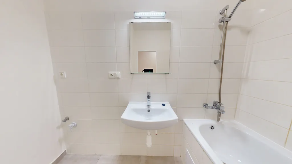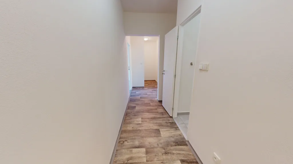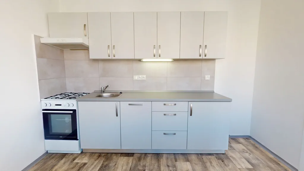 Byt má vyzděné jádro, podlahy, rozvody, omítky, interiérové dveře. Koupelna s vanou a umyvadlem s možností připojení pračky, toaleta je odděleně. Prostorná kuchyňská linka je opatřena plynovým sporákem a elektrickou troubou.