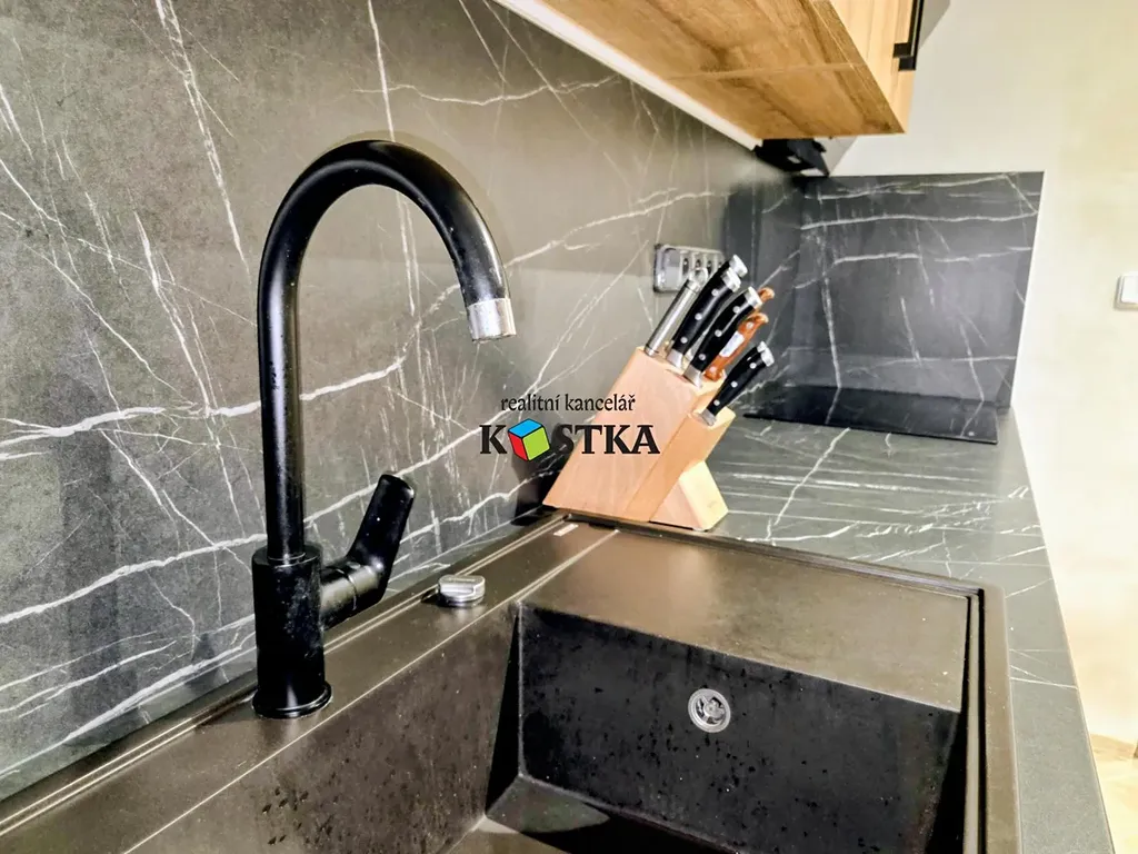 V kuchyni najdete velmi hezkou a praktickou kuchyňskou linku s vestavěnými spotřebiči. V koupelně je mimo vany a umyvadla i prostor na pračku a sušičku.