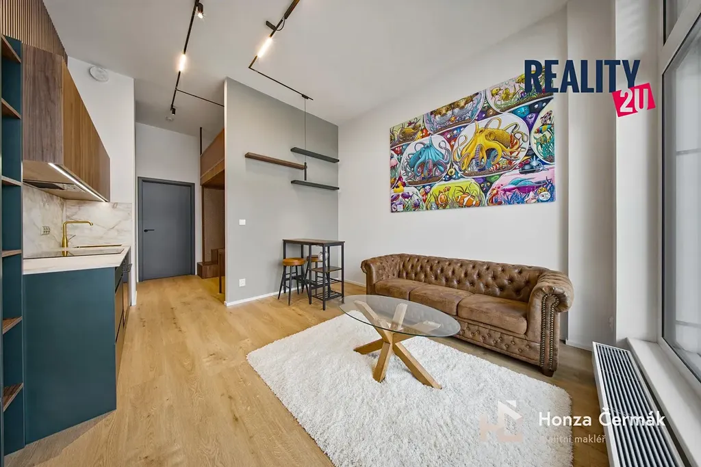 Jednotka s dispozicí 1+kk o podlahové ploše 35,2 m² se nachází v přízemí a vyniká precizním zpracováním veškerého nábytku na míru. Každý centimetr prostoru je využit efektivně a vkusně, což doplňují nadstandardní prvky jako jsou předokenní rolety pro dokonalé soukromí i tepelnou pohodu. Interiér kombinuje moderní design s praktičností, což dokazuje například spací patro s kvalitní matrací nebo velkorysé pracovní místo pro dvě osoby umístěné pod ním.