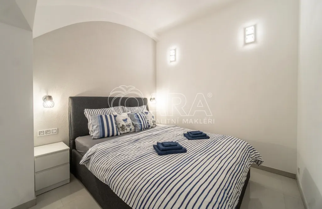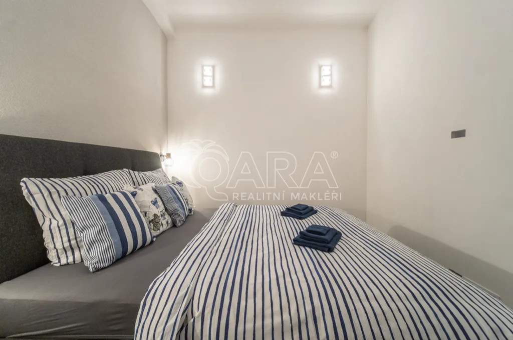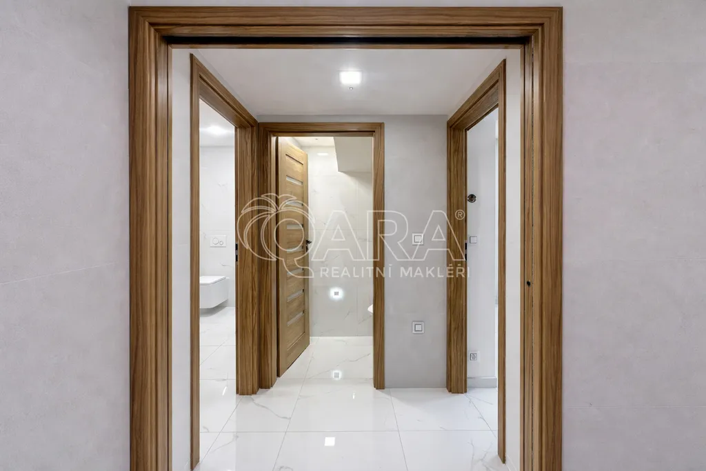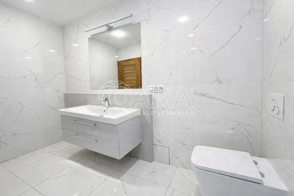 Vybavení: novou kuchyňskou linkou včetně spotřebičů, indukční varná deska, vestavěná horkovzdušná trouba, mikrovlnná trouba, myčka nádobí, lednice s mrazákem, digestoř s odtahem, pračka se sušičkou. Nové interiérové dveře a bezpečnostní vstupní dveře osazené bezpečnostním kováním. Štuky a dekorativní omítky. Stropní podhledy s přidanou zvukovou izolací a světelné LED rampy s RGB barevným efektem. Nová elektroinstalace, rozvody datové sítě pro internet O2, Vodafone, nová rychlá optická sít v domě.