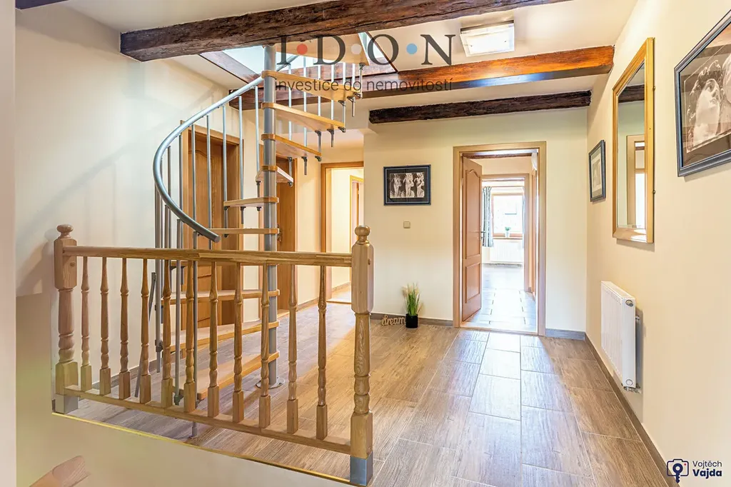 Jedná se o dům, který se dá využít jako sídlo firmy, penzion nebo vícegenerační dům. Je plně vybaven a ihned k dispozici. 1.NP nabízí prostornou místnost s terasou, která se dá využít například k různým jednáním. Vybavená kuchyň včetně spotřebičů. Příjezdová rampa ke snazšímu naskladňování zboží. Ve 2.NP se nachází dva větší pokoje. Každý pokoj je vybaven novou postelí včetně matrace. Dále pokoje mají vlastní koupelnu a WC. Na patře nalezneme ještě jeden prostorný pokoj, který lze využít jako společenskou místnost, obývací pokoj, přednáškový sál apod. Budova nabízí využití půdního prostoru, který po rekonstrukci může sloužit jako další místnost .