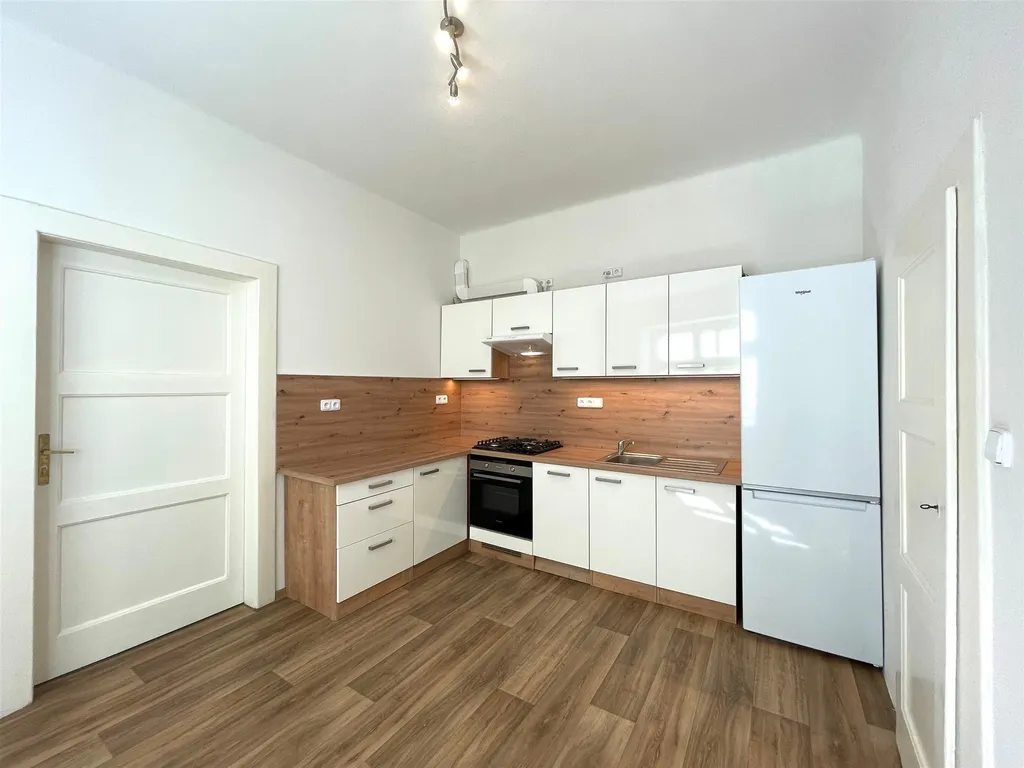 Byt je situován do vnitrobloku a skládá se z obývacího pokoje s kuchyňským koutem, ložnice, koupelny s vanou, samostatného WC a předsíně. V bytě je kuchyňská linka vybavená kvalitními spotřebiči (vestavná plynová varná deska, horkovzdušná trouba, digestoř, lednice s mrazákem) a v koupelně je pračka. Byt má vlastní ústřední vytápění a ohřev vody (kombi kotel Vaillant), plastová okna izolační skla, dřevěné dveře a podlahy jsou lamino plovoucí a keramická dlažba. V bytě je aktuálně postel a skříň, kdy je patrné viz poslední fotka nabídky, které lze v bytě ponechat či v případě nezájmu bude odvezeno.