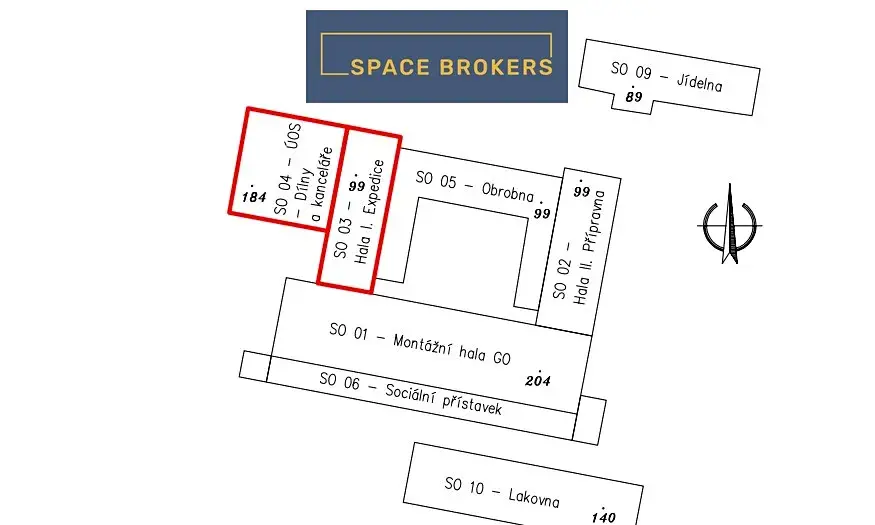 SO 01 - cca 1.700 m2 skladových prostor včetně zázemí a kanceláří pro zaměstnance