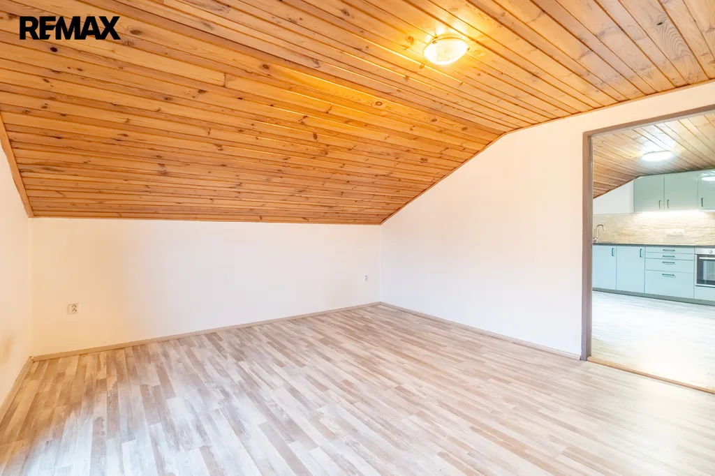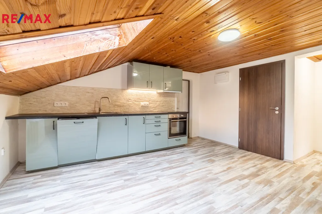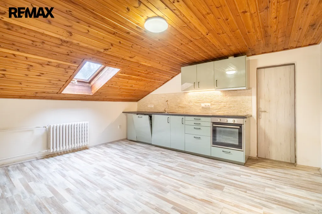 Dispozičně byt nabízí dva samostatné pokoje a velkorysý obývací prostor s kuchyňským koutem, který tvoří přirozené centrum celého bytu a poskytuje dostatek místa pro každodenní život i odpočinek. Kuchyňská linka je prakticky řešená a plynule navazuje na obytnou část. Koupelna je prostorná a nabízí jak vanu, tak sprchový kout, což zvyšuje komfort užívání. Díky podkrovnímu charakteru a dostatku oken působí interiér velmi světlým a vzdušným dojmem a je připraven k okamžitému nastěhování.