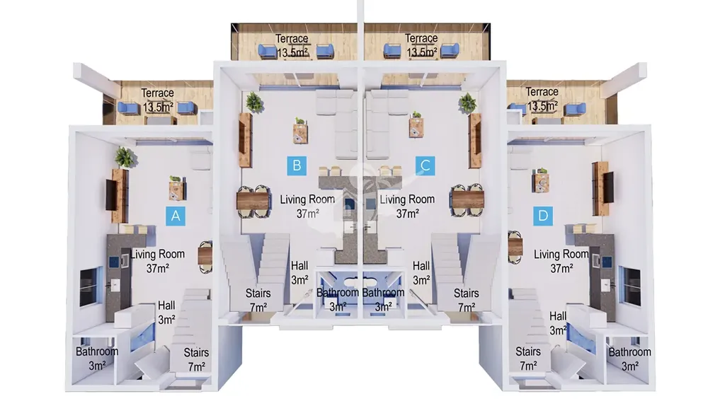 Vily 3+1 mají tři patra , čtyři koupelny , velká střešní terasa kde se da postavit pergolu , gril a jaccuzi. Vše se nachází 300m od pláže na Kypru. Součástí projektů bude i luxusní jacht klub. K vilám náleží i vlastní bazén. Vedle je skvělý aquapark, je to opravdu vynikající investici na pronájem a uložení peněz.