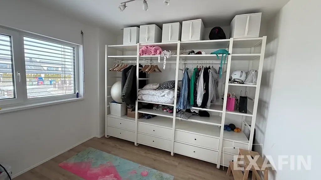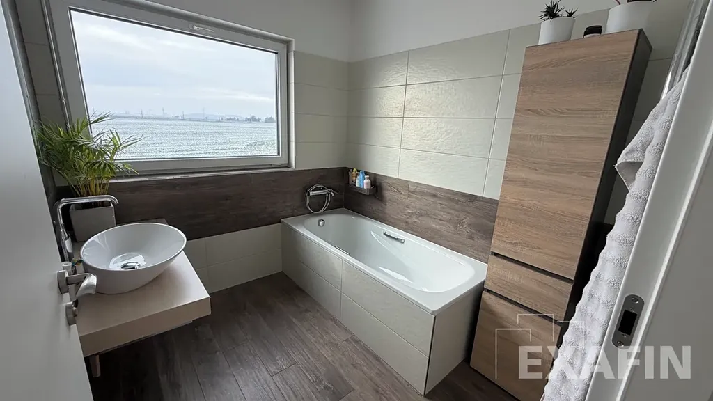 Okna jsou trojskla, na oknech jsou nainstalované předokenní žaluzie. Podlaha je vinylová.