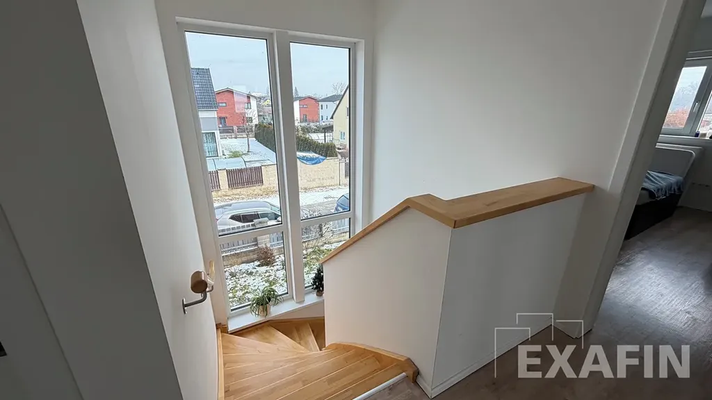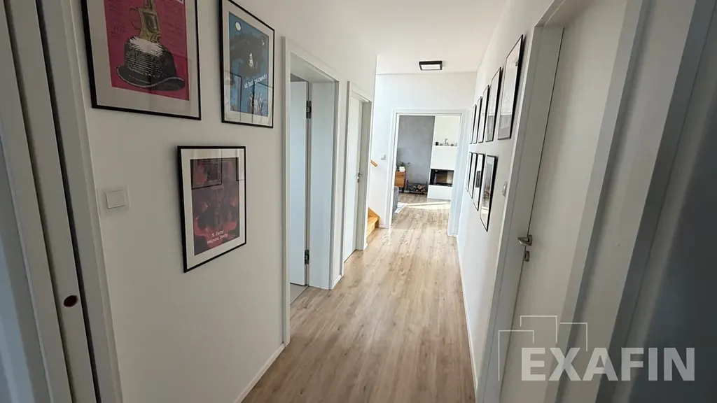 Jedná se o promyšlenou dřevostavbu, která byla postavena před 9ti lety. Praktické uspořádání domu - v dolní části se nachází obývací pokoj napojený na kuchyňský kout, praktická pracovna, která může sloužit i jako ložnice. Z obou místností je vstup na zahradu, která má příjemný výhled do krajiny. V dolní části dále naleznete koupelnu se sprchovým koutem a toaletou, úložný prostor pod schody a technickou místnost. Nechybí ani praktické zádveří.