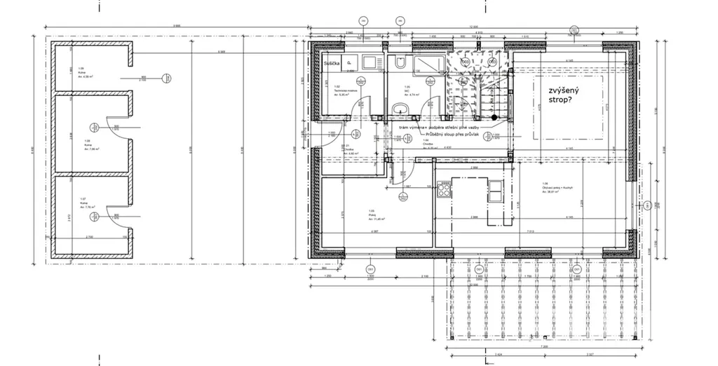 V domě je rekuperace a v obývacím pokoji je klimatizace.