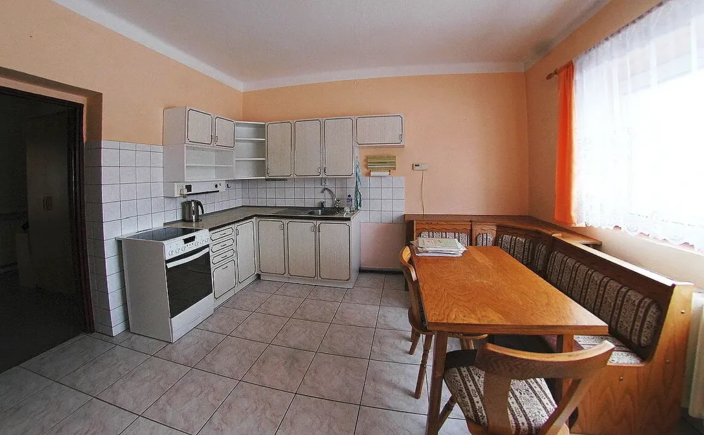 Nabízíme k pronájmu rodinný dům se zahradou v Chotěšově. K dispozici je obytné přízemí zahrnující kuchyni, dva pokoje, koupelnu a WC, v podkroví jsou dvě místnosti ideálně vhodné k přechodnému bydlení, případně jako pracovna či hostinský pokoj. Celková užitná plocha činí 115 m2. Výměra pozemku 977 m2, v případě, že zájemce se nechce starat o velkou zahradu, lze část pozemku oddělit. Dům je zčásti podsklepený, sklep je suchý, lze jej využít jako sklad, dílnu. K domu přináleží samostatný objekt společné garáže s dílnou o výměře 45 m2, tento prostor lze i vytápět prostřednictvím kamen na dřevo a je proto možné jej využít i k drobnému podnikání (součástí je montážní jáma). K dispozici je letní pergola. Dům je napojen na veškeré inženýrské sítě, vytápění prostřednictvím plynového kotle, ohřev vody prostřednictvím bojleru. Energie budou převedeny na nájemce. Dům je z větší části vybaven starším, ale naprosto funkčním nábytkem. V kuchyni je k dispozici kuchyňská linka, jídelní stůl se židlemi a lavicí. Ložnice je vybavena dvojlůžkem, k dispozici je pračka, prostorné šatní skříně v předsíni, v obývacím pokoji je televizní stolek a dvě knihovny. Koupelna je vybavena vanou. V okolí se nachází zástavba rodinných domů, jedná se o bezpečné a klidné místo, dům je situován na okraji obce. Město Chotěšov nabízí kompletní občanskou vybavenost (mateřská školka, základní škola, síť obchodů, lékárna, lékař, sportoviště, dětská hřiště aj.). Energetická třída dočasně stanovena jako G, PENB který by tento údaj zpřesnil, zatím nemá RK k dispozici.