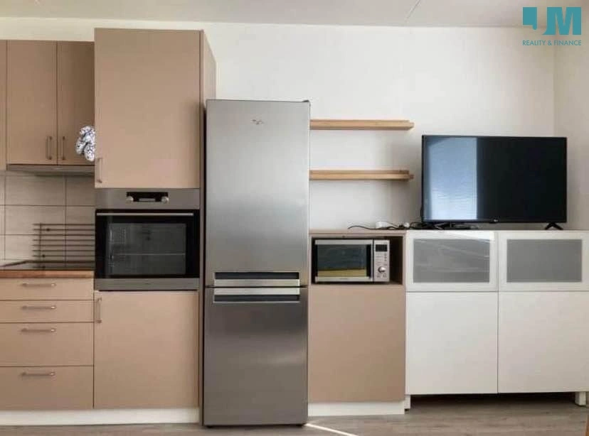 Dispozice a vybavení: Plně vybavená kuchyň: myčka, lednice, vestavná trouba, mikrovlnná trouba, varná konvice, základní nádobí, pračka LG.. Postel s úložným prostorem (140 cm) – bez matrace, vestavná hluboká skříň a botník v předsíni – dostatek úložného prostoru pro vaše věci.