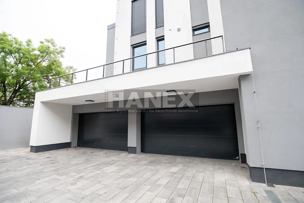 Přehlednou dispozici bytu tvoří obývací pokoj s kuchyňským koutem, komorou, třemi ložnicemi a pracovnou. K bytu patří rozhlehlá zahrada s terasou a dvě krytá parkovací stání v garáži s přípravou pro dobíjení elektromobilu.
