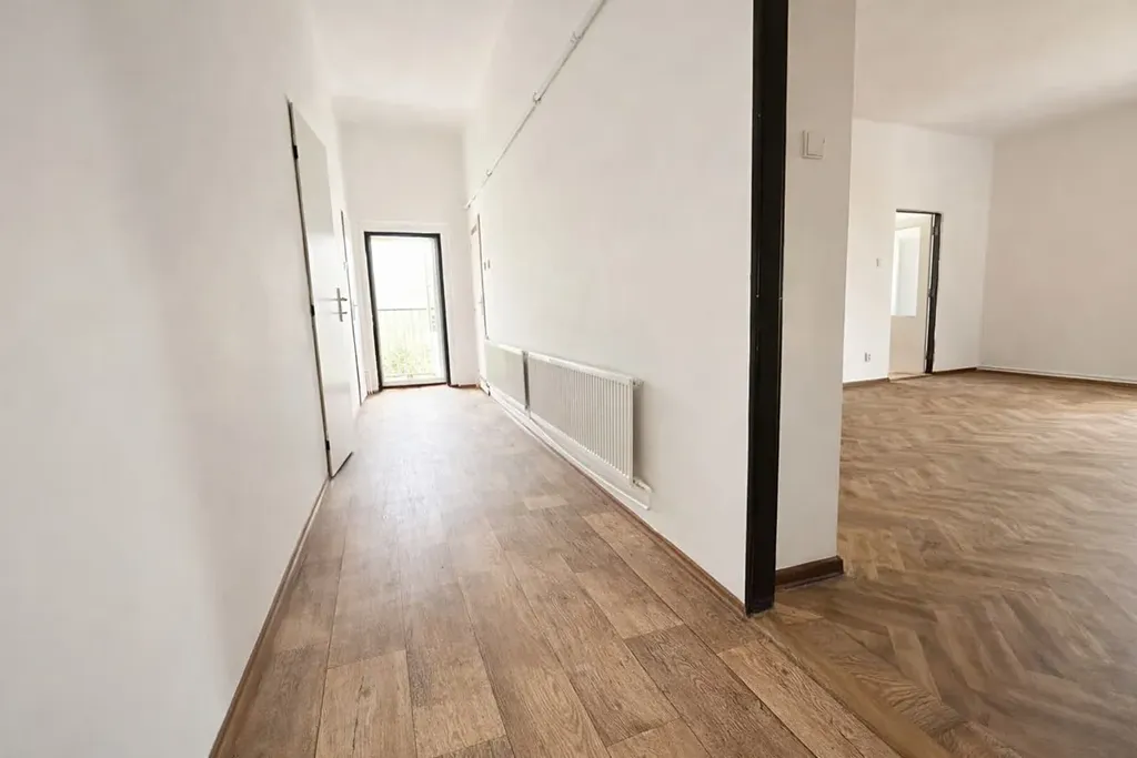 Nabízíme k pronájmu slunný a útulný byt 1+1 o velikosti 70 m² s balkonem (3 m²) a dvěma sklepy (2 m² a 4 m²), situovaný ve 2. patře dvoupodlažního cihlového domu.