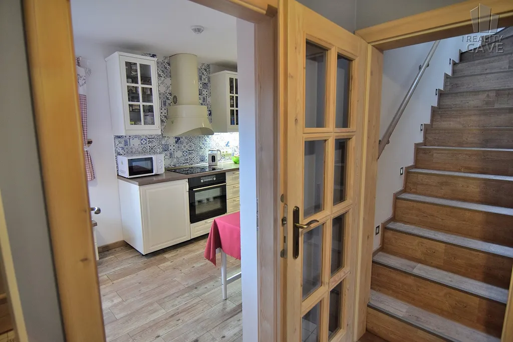 Dispozice domu je 4+1 se dvěma koupelnami, technickou místností a chodbami se schodištěm. Užitná plocha činí 124 m². Na dům navazuje zrekonstruované venkovní příslušenství – zimní zahrada, dílna a sklad, které jsou vzájemně propojeny. Tyto prostory mají nové omítky, plastová okna, podlahy, kompletní rozvody sítí a je zde i možnost vytápění.