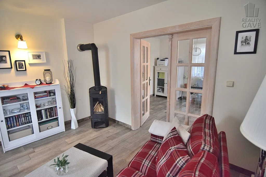 O vytápění se stará tepelné čerpadlo FUJI (v záruce), které dodává teplou vodu do podlahového topení v celém přízemí a do radiátorů v podkrovním patře. Teplou vodu připravuje elektrický bojler Dražice o objemu 120 l. Díky tepelnému čerpadlu se celkové měsíční náklady pohybují přibližně kolem 5 000 Kč (pro tříčlennou domácnost). V obývacím pokoji je navíc možné přitopit kamny; komín má nerezovou vložku a platnou revizi.