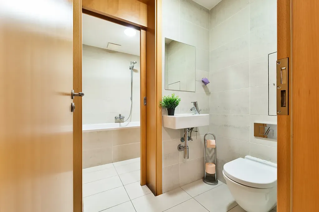 Koupelna s vanou a toaletou